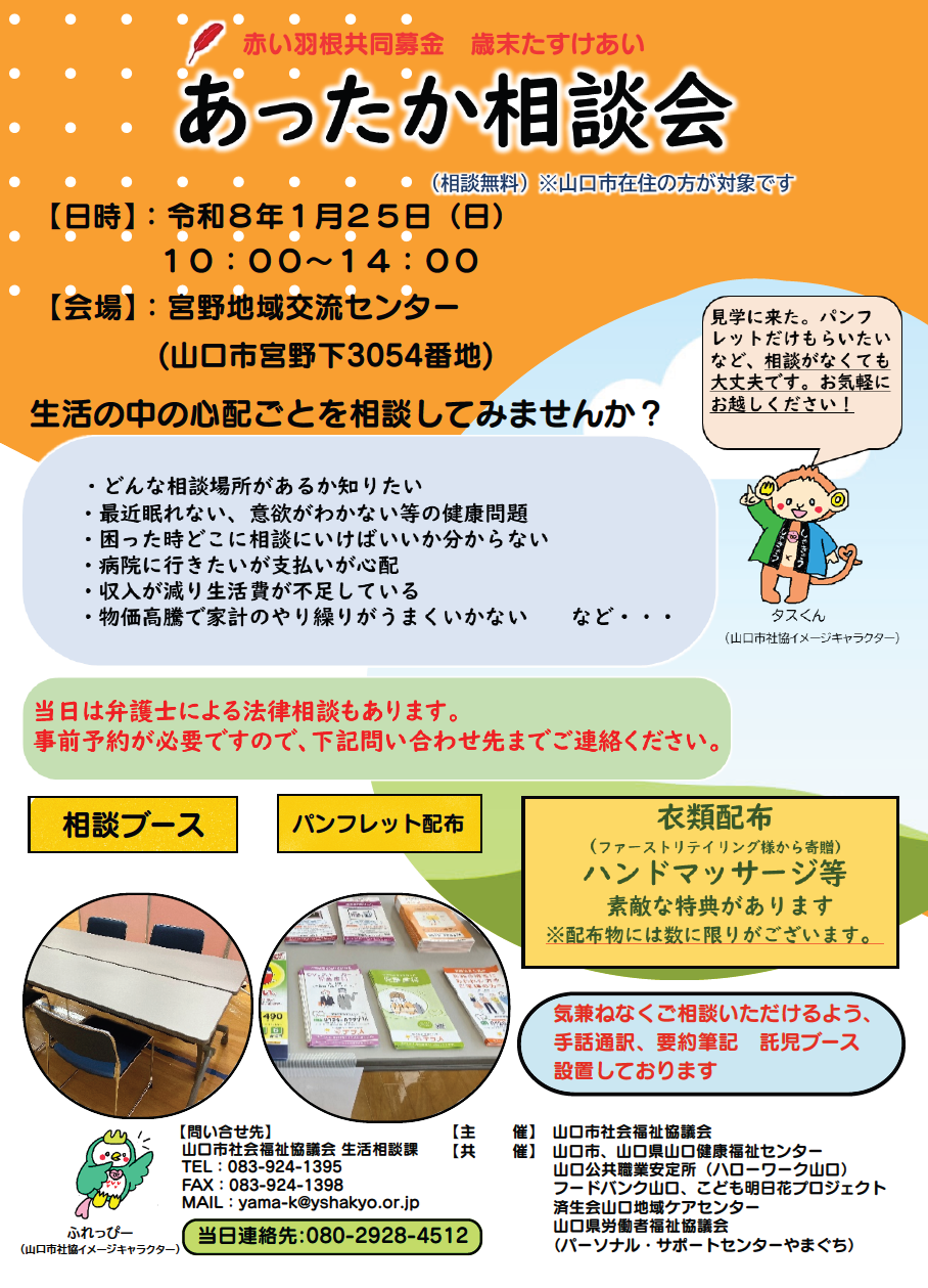 お問合せ、予約先:山口市社会福祉協議会 生活相談課