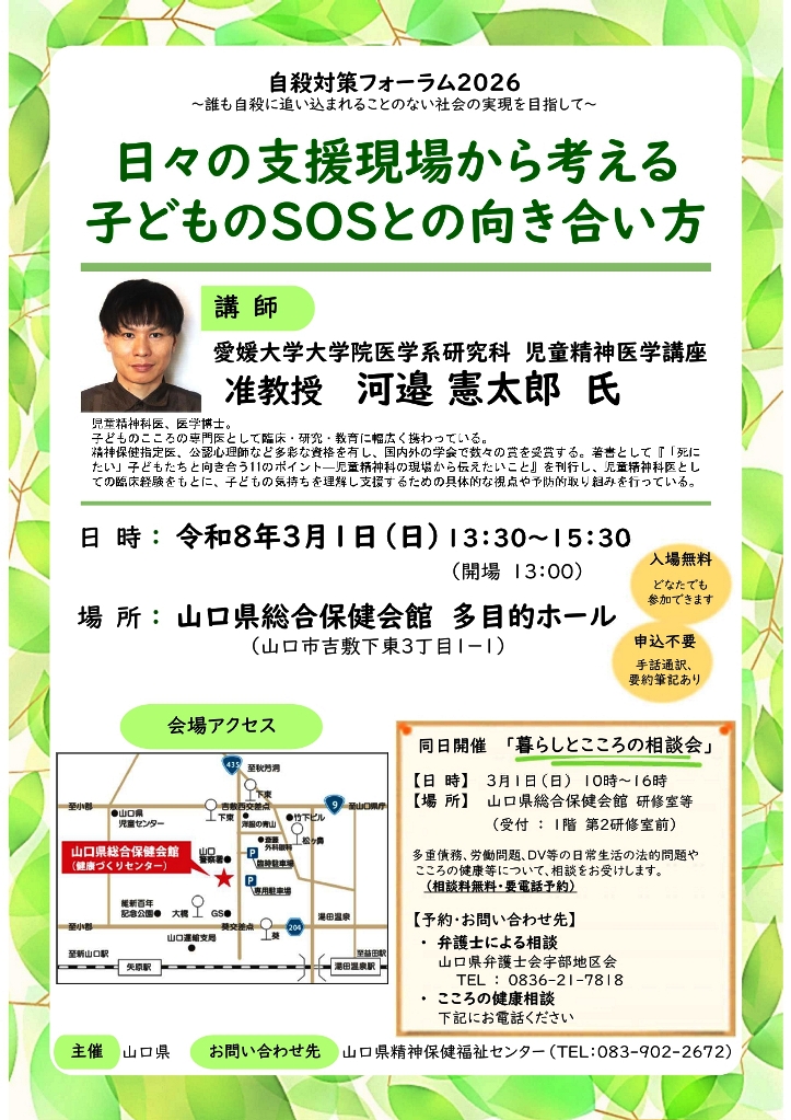 お問い合わせ先:山口県精神保健福祉センター TEL083-902-2672